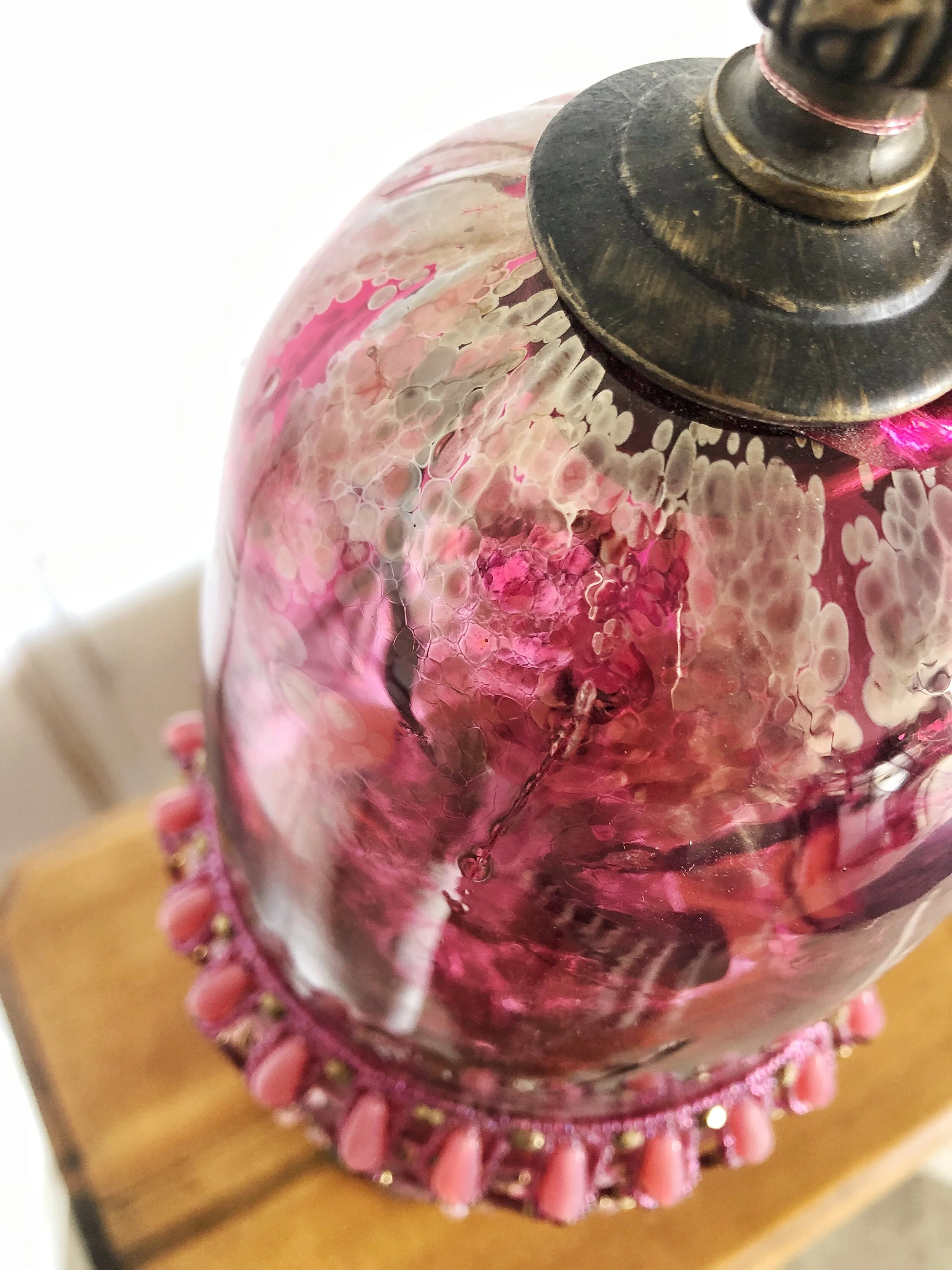 Each piece is an original, whether it is enhanced with my blown glass, repainted and adorned with fresh gems & crystals.